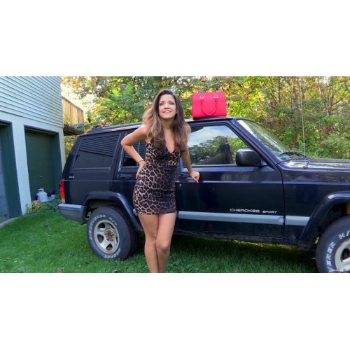 Jasmine has called a neighbor to help her because she has managed to lock her keys inside her Jeep, including her house keys. She asks him if he can get into the Jeep somehow, but he confesses that he does not know how to do that. Jasmine phones Triple-A to ask them to help, and is informed that someone will be with her in forty minutes to an hour. Her problem is worse than a long wait because she needs to pee, badly. If she can just get rid of her neighbor, she could squat down behind the vehicle, lift her dress, pull down her panties and relieve herself. However, her neighbor is concerned for her safety, stuck outside of both her vehicle and her home, so he says he keep her company until Triple-A arrives. Jasmine thanks him, while thinking: "how am I going to get out of this?" As time crawls by, Jasmine tries time and time again to persuade her neighbor to go home, but he won't budge. Jasmine is really bursting to pee now but knows she will simply have to wait. She manages to hold on for almost half an hour, then feeling a moment of crisis approaching, she makes one final bid to get her neighbor before it is too late. He still won't go. Finally, left with no choice, Jasmine turns to face her vehicle as she wets herself, pee streaming down the backs of her legs. Thoroughly embarrassed, she asks her neighbor to just go away, but that concerned citizen sticks around to witness her total humiliation.