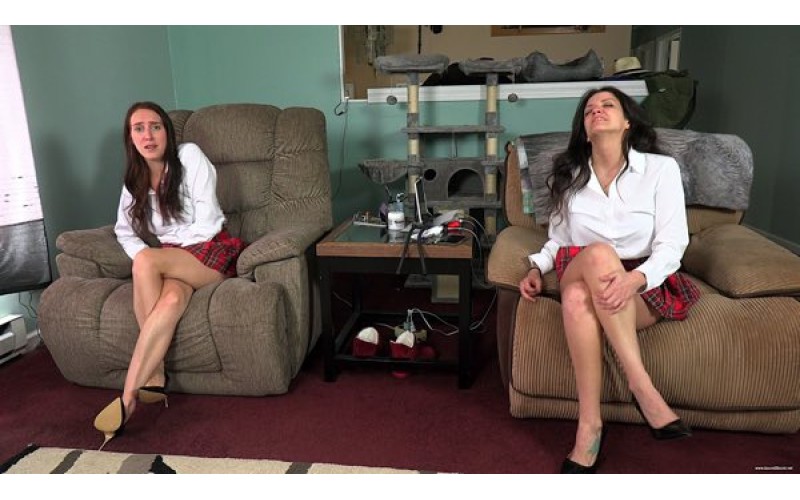 Cadence and Jasmine have just arrived home after a long day at the club, only to find a burglar in their home. He was not expecting them back just yet, and now has to keep them under control while he decides what best to do with them. The problem for the girls is that they are both desperate to pee and were seriously looking forward to a visit to the bathroom. Unfortunately, the burglar won't let them go. They are made to sit down in arm chairs and wait while he decides how to handle the situation. The girls keep stressing that they are bursting to pee and really need to go right away, but still he makes them wait. Worried that they will wet themselves, both Cadence and Jasmine plead with him, offering him more valuables if he will just let them go and pee. The answer is still no. The girls are at their wits end, trying to maintain control while being trapped in this scary situation. When it becomes clear that the girls are about to lose it, the burglar finally relents, but says he will accompany them to the bathroom and watch them pee. At this stage, the girls don't care as long as they get to piss at last. He makes them walk to the bathroom, rather than run, then stands and observes one sit on the toilet and relieve herself while the other stands there squirming in extreme desperation. Finally, he decides to depart and locks them both in the bathroom.